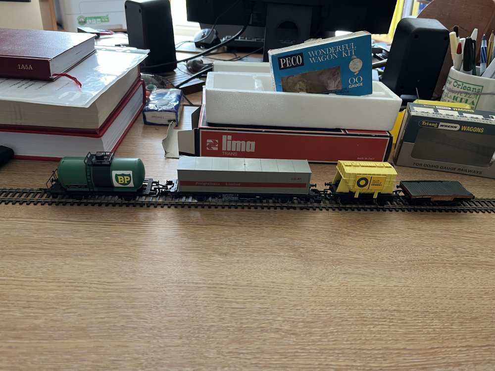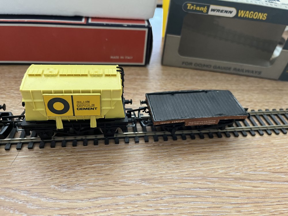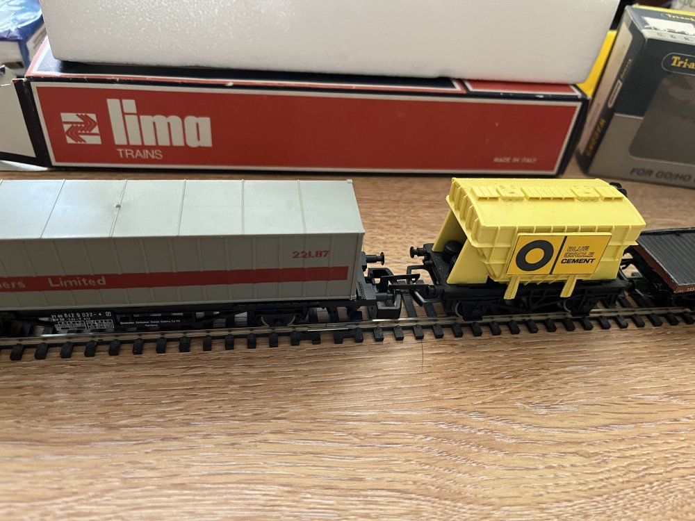 Assorted batch (4) of OO gauge freight vehicles: 2 Lima, 1 Wrenn (yellow hopper), and 1 Peco (1 plank open). In original boxes. Free to good home! Can be collected from Ballinlough area of Cork City, or mailed at cost. Note: stretch of rail in the photos is not included! All 4 to be taken, please; I don't wish to split the group.