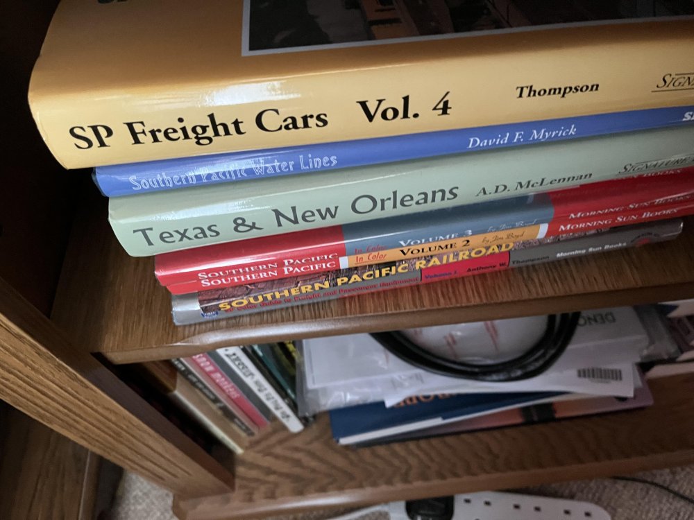 I have some 15 album type books on the Southern Pacific Railroad free to a good home. These include SP Passenger Cars vols 1 and 2; SP freight cars vols 1-5; SP Water Lines; Texas & New Orleans Railroad; and various color albums of the SP. Also a generic N America locos album. Photos attached. Free, but must be collected from Cork as very bulky and expensive to be posted! Contact at meiriongwril@gmail.com