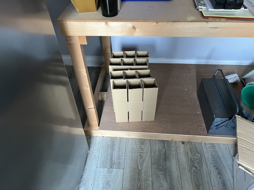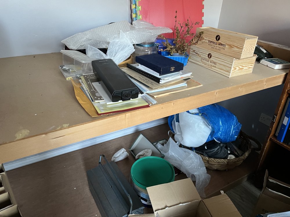 Free: an 8 foot by 3 foot 3 inches baseboard, unused. Top is ply. Sturdy legs and fixed lower shelf also ply for railway equipment or could be used for second layout. Collection only from Cork city (Ballinlough). Can be viewed by arrangement. Photos show it being used as a storage table; of course none of these items in the photos are included in sale! THIS IS NOW DISASSEMBLED AND CAN BE COLLECTED! GOING FOR SCRAP SATURDAY 4 MARCH!! Note, the two ply boards are each single sheets, however, the frame is screwed together and therefore the whole structure can be disassembled for transport. Buyer would need to bring along an electric screwdriver to do this.
