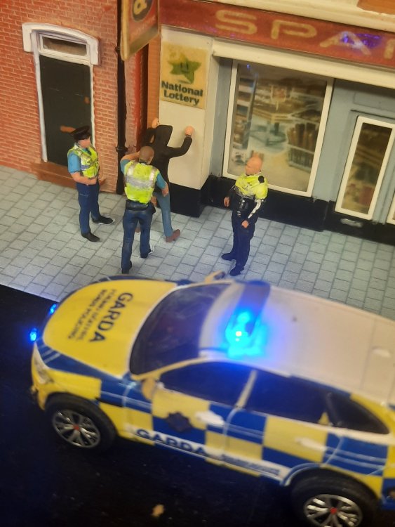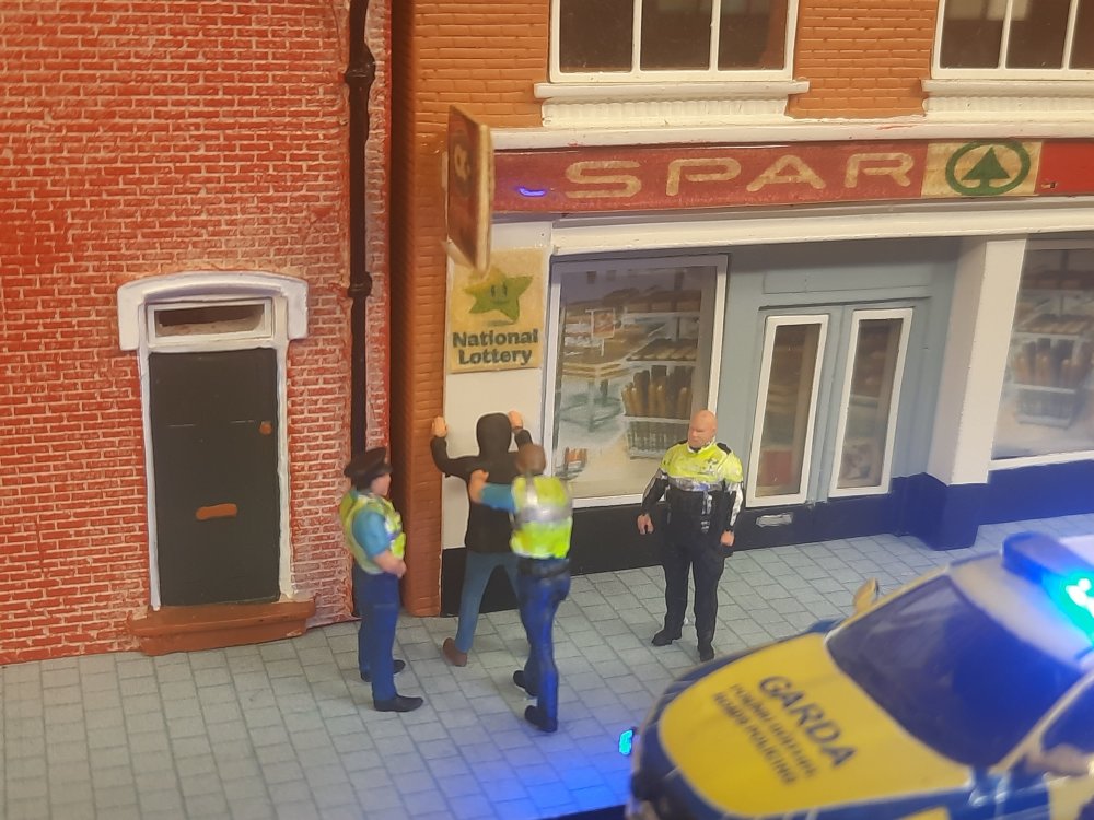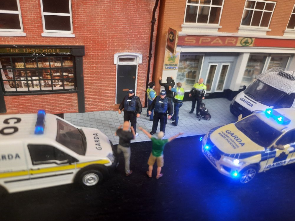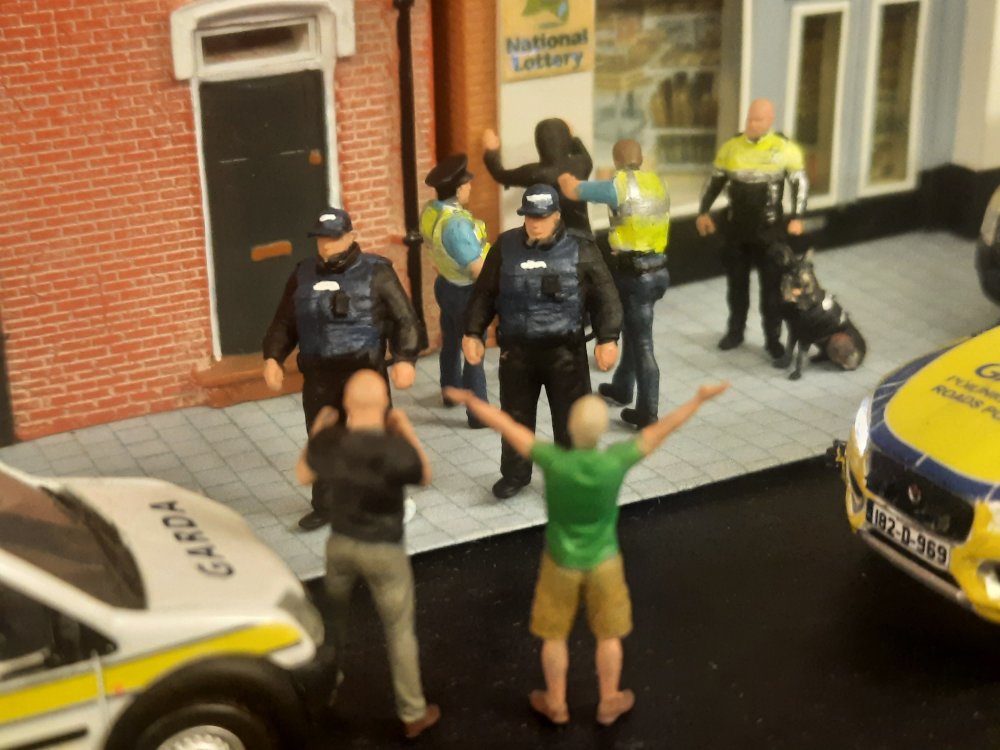 Grange Castle Gardai finally received their new uniforms this week. Roads Policing unit detaining a shoplifter they've come across, quickly assisted by public order unit after a few locals turned hostile.
