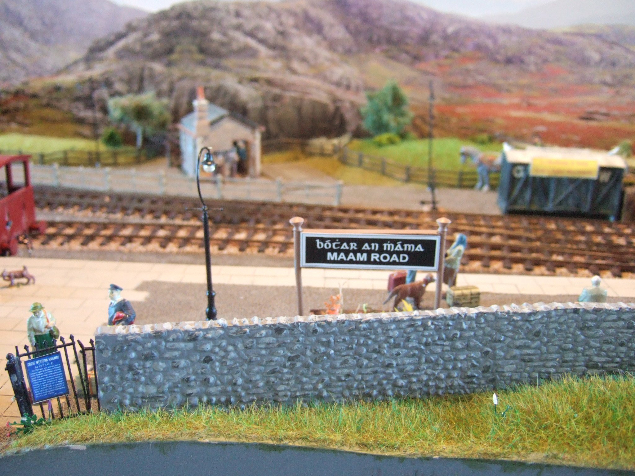 Irishrailwayman Posted December 31, 2025 Author Posted December 31, 2025 (edited) Other progress on "Maam Road/Bóthar an Mhama" includes bi-lingual signage (thanks to Des Sullivan at Studio Scale Models), brake vans and corrugated open wagon (thanks to Enda Byrne at CK Prints), water column by Skytrex and water tower in place on layout (thanks to Redmond O'Hanlon). A truely collaborative project with creative craftsmen. The signage has the Irish language version in the "sean-cló" or old irish writing style with "H"s replaced by a dot over the previous letter. Edited December 31, 2025 by Irishrailwayman 12