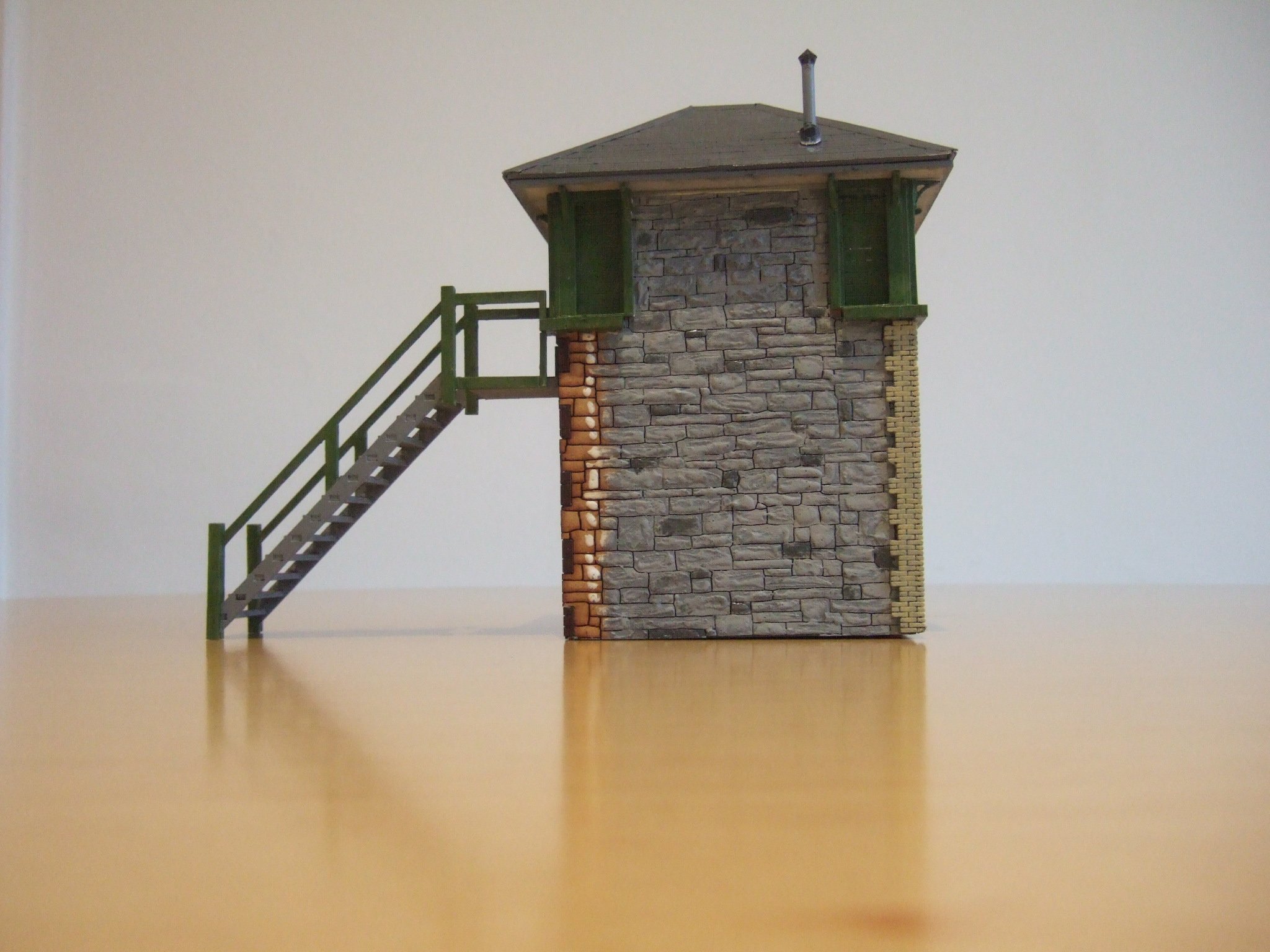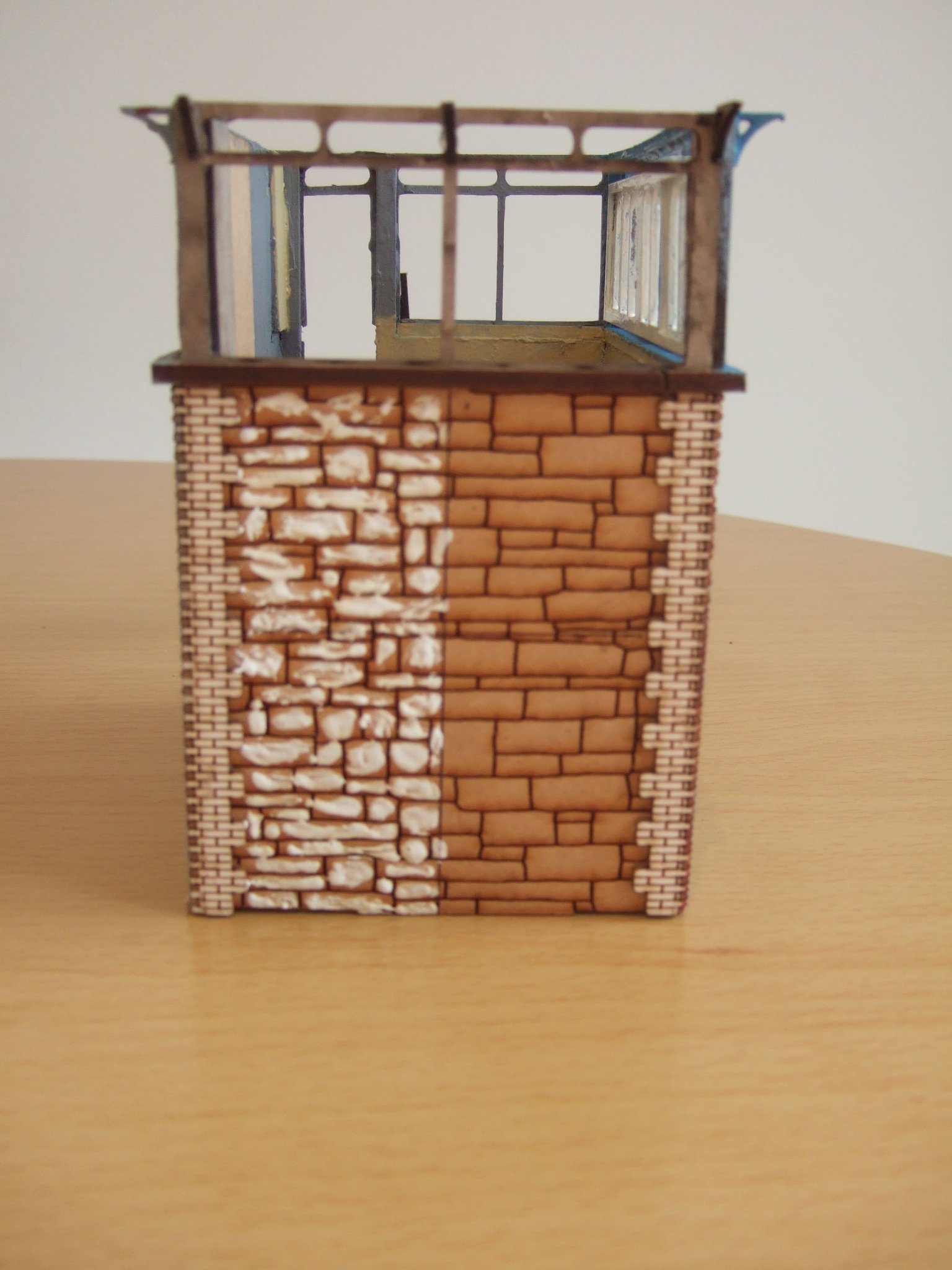 jhb171achill Posted December 17, 2025 Posted December 17, 2025 8 hours ago, Irishrailwayman said: Just a note to file on a suggested painting scheme for the water towers. First coat all exposed wood with Rustins grey primer/undercoat. Next "dry brush" with Humbrol #64 Light Grey matt (ie use small amounts of paint on a flat brush wiping it almost dry on kitchen paper before skimming across the "stones" avoiding flooding the "mortar" lines between). Pick out individual stones with Humbrol #27 Sea Grey matt. For woodwork, windows and door use Humbrol #80 Grass Green matt. For "yellow" brickwork lightly paint to avoid flooding the "mortar" lines with RailMatch #606 GWR Light Stone (Humbrol #121 Pale Stone matt would work either). For red brickwork use sparingly 50:50 mix of Humbrol #73 Wine matt and #62 Leather matt. For the 3-D printed water tank streak sides with Humbrol # 113 Rust; insert clear plastic to fit, paint underneath with Humbrol #80 Grass Green matt and streak with Humbrol #113 Rust matt (could also paint blue/brown as colour in reality would be dictated by overhead light conditions). I used a section of 5 mm plastic tubing and some heat-shrink tubing to represent the water outlet leather bag which flops in to the receiving steam engine water intake point. I fitted small sections of clear plastic behind the windows with DeLuxe Glue& Glaze as glazing. I’m going to print that off as a guide!! 1