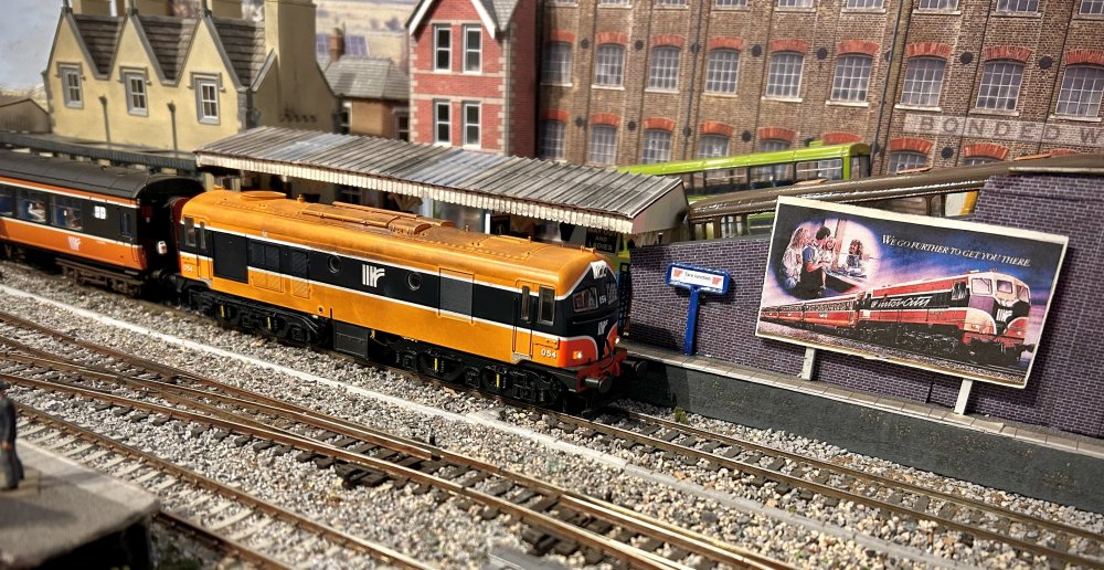 ttc0169 Posted July 23, 2012 Author Posted July 23, 2012 Beautiful! Is that second shot modelled on around Inchicore? Yes Vincent it is loosely based around Inchicore-Heuston with the four track bi-directional lines which give me lots of operating options, Here are a few photos of Monday evenings locos which are being serviced at the depot for evening passenger and freight services, 146 gets checked over at the running shed before being allocated to a fertliser train. A view from the cab of 156 of various locos in the yard. 201 off the 19:00 Mk3 set arrives at the shed and gets checked out-while 210 awaits a driver to work it back to the station for passenger duties, Locos 155+156 will work the oil train transfer from the oil road siding over to the railcar depot and later to the carriage valeting plant after the passenger services have finished.