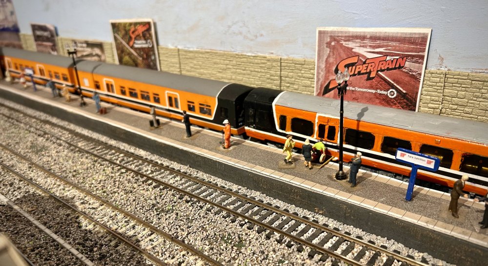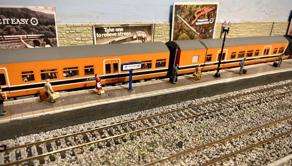 ttc0169 Posted September 2, 2012 Author Posted September 2, 2012 Evening lads I finished the Mk2 Supertrain coaches yesterday and gave them a trial run behind locos 181+177, 181+177. I've also put together a four coach CIE mail train based on the one that used to operate between Dublin and Cork and Dublin-Galway during the 1970s-1990s, As a bit of a novelty I bought the Hornby operating mail coach and repainted it into black and tan livery along with a Bachmann TPO coach, The train has two mail coaches (2976+2977) a Cravens passenger coach (1515) and a BR type steam heating van (3177) hauled by 160+156 Passenger accommodation was also provided on some mail train e.g 05:50 Dublin-Cork,15:00 Cork -Dublin, I've also uploaded two videos to YouTube of the mail train picking up and dropping off mailbags at speed, Here are a few photos.... 160+156 haul the mail train passing the Mk2 Supertrain. The mail train stops at Central station for a crew change.